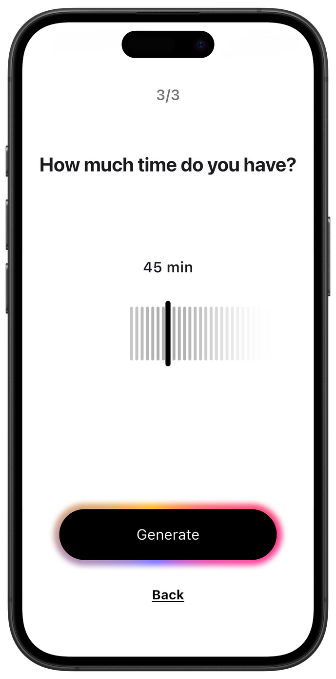 Whether you have 20 minutes or an hour, the workout adjusts automatically.